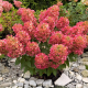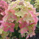 Эта шикарная гортензия образует огромные, плотные соцветия, до 50 см в длину. Основание метелки достигает 20 см. Крупные цветки, до 6 см в диаметре, в начале цветения имеют лаймовый оттенок, затем окрас начинает интенсивно розоветь. Высота куста около 120 см.