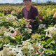 Так как сорт совсем новый (2020 года, официально представлен в 2021), то оценить ее ростовку в нашем регионе, пока не возможно. За этот сезон (2021), Стар Роуз вырос до 140 см и шириной 70 см. Вторая и самая яркая особенность, это цветение. Крупные лепестки фертильных соцветий в форме пропеллера, размером 5-7 см. Соцветия удлиненной , немного округлой формы, белого цвета, к осени неравномерно розовеют.